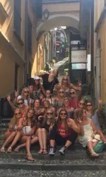 As we touched down in Milan, with all of my teammates surrounding me, we realized not one of us could speak Italian. However, we had faced much bigger challenges in the past, and I have seen The Godfather many times so I felt prepared. At this point, all of us were still happy and content after what most people consider a generally miserable plane flight. We all cheered and laughed and made jokes as we came off our 14 hours of traveling, unsure of what this adventure would hold, but knowing that since we were all together, it would be a blast. We only had two certainties about Lake Como - that George Clooney has a house there and that "ciao" means both hello and goodbye.Getting to the hotel was a little more strenuous than any of us expected. The bus dropped us off in the middle of a seemingly chaotic street. Pinta gave us a quick warning -- "By the way, the cars won't stop for you" -- and we were instructed to get our bags and go to the hotel. At this point, there is only a church and a bank in sight. Jovan led us to a hill, atop of which was our hotel. After 14 hours of travel, each of us with two bags packed to the max, this hill is the biggest one we had ever seen. We would take running the Coliseum over walking up this hill. Don't worry though, we made it up with only about a gallon of sweat lost.